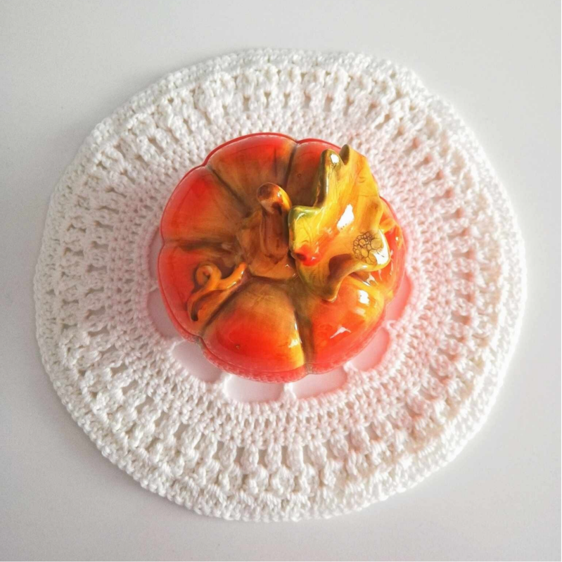 Autumn has arrived (even though we're also living an Indian Summer), which means I can decorate my living space with autumnal decor and all the pumpkins I can find! I love this pumpkin jar I bought years ago from a shop in Blankenberge. I crocheted the mandala underneath with white cotton yarn based on a pattern from ByHaafner.