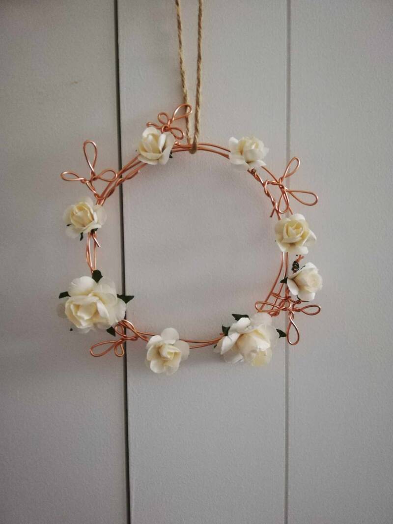 - wrap the wire 3-4 times around a flower pot or something round with the size of circle you want to create and cut the wire